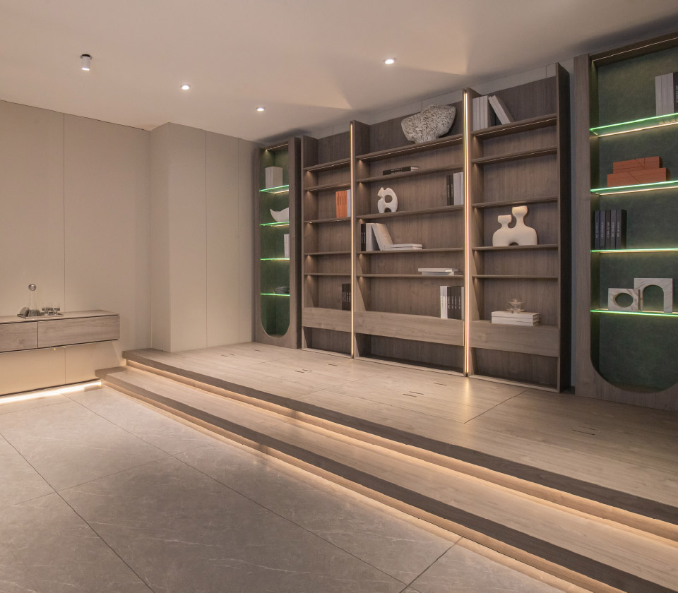 流暢的線條,勾勒干凈利落輪廓,柜體與燈帶的組合,營造奢闊有度的空間感。簡約而不簡單,每一寸產品肌理,都是對工藝的用心考量。