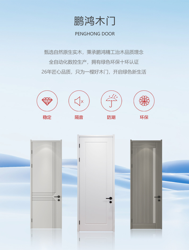 PENGHONG DOORs甄選自然原生實木,秉承鵬鴻精工治木品質理念,全自動化數控生產,擁有綠色環保十環認證。26年匠心品質,只為一樘好木門,開啟綠色新生活。