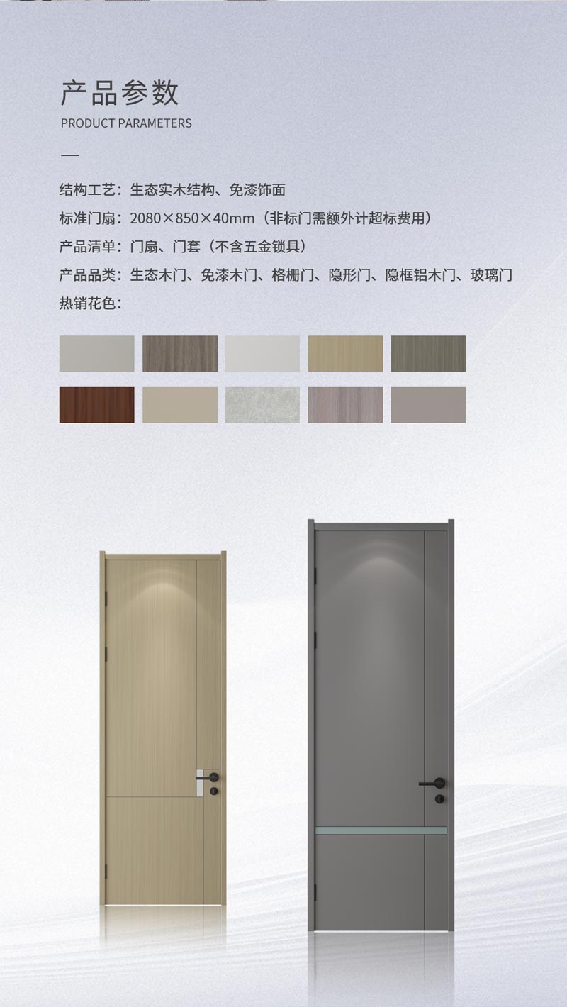 產品品類:生態木門、免漆木門、格柵門、隱形門、隱框鋁木門、玻璃門