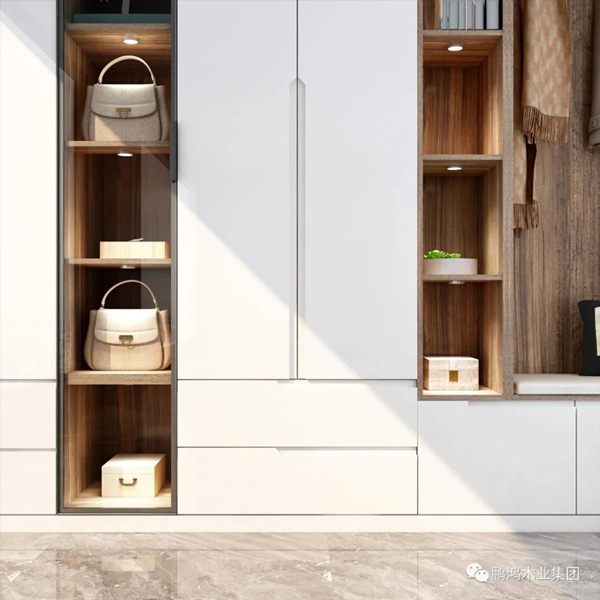 時尚簡約的設計日益成為人們對家居的追求,這不僅僅是審美的變化,更是一種棄繁從簡的生活態度。鵬鴻板材免扣手吸塑柜門,無把手設計,極簡風格,一體成型,讓柜子看起來更為簡潔、美觀。