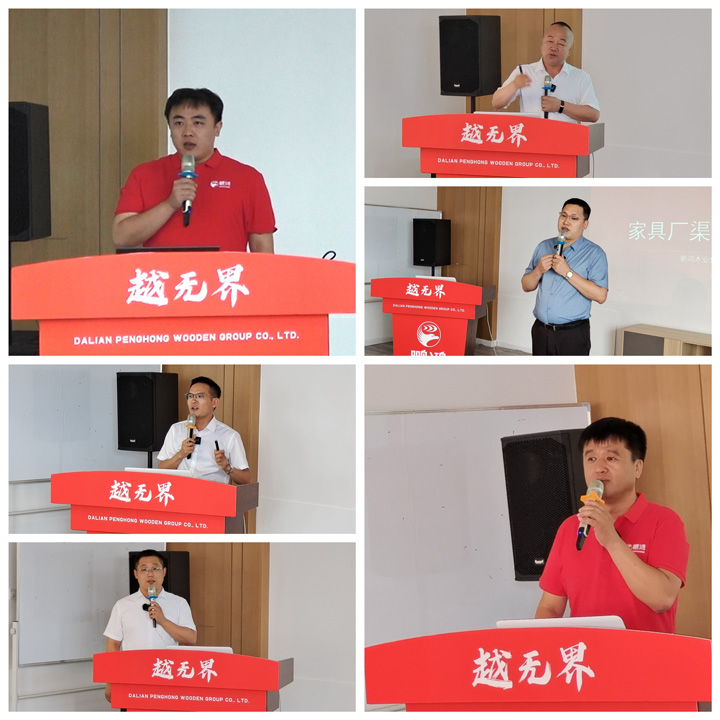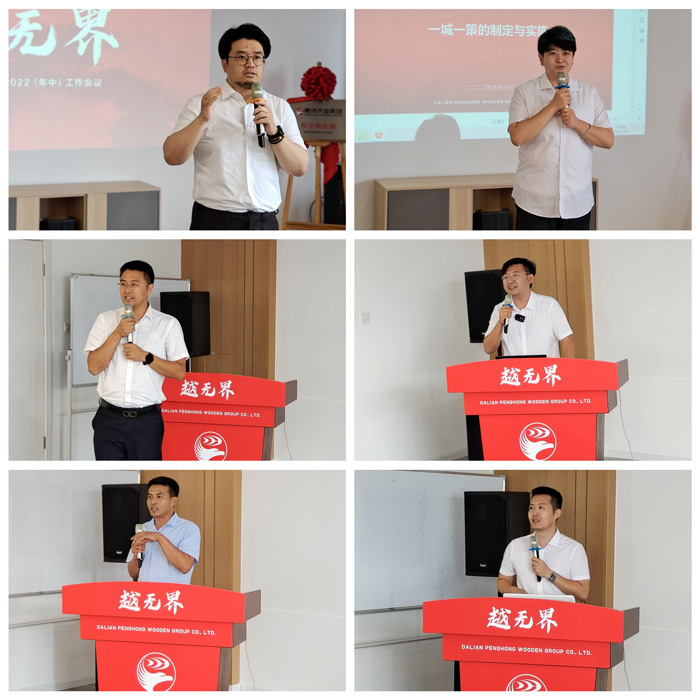 本次工作會現場,鵬鴻木業集團四大銷售事業部、大區相關負責人走上臺前,復盤半年度工作,分享工作經驗,探討營銷策略。