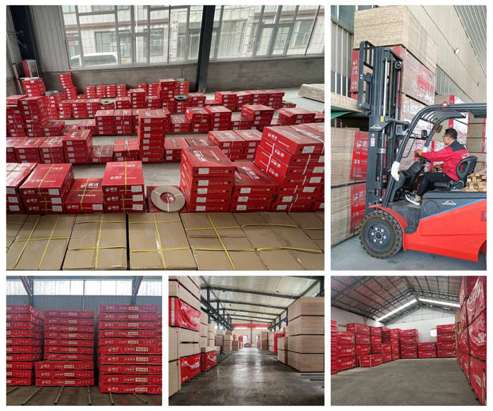 升級后的大連直營倉暨物流配送中心將全面輻射大連及周邊區域,面積擴容5倍以上,常備庫存囊括顆粒板、碳晶板、FOSB板、PET板、聚能多層家具板等市場熱銷的主流板材,更匹配了同色封邊、基礎五金等配套輔料。